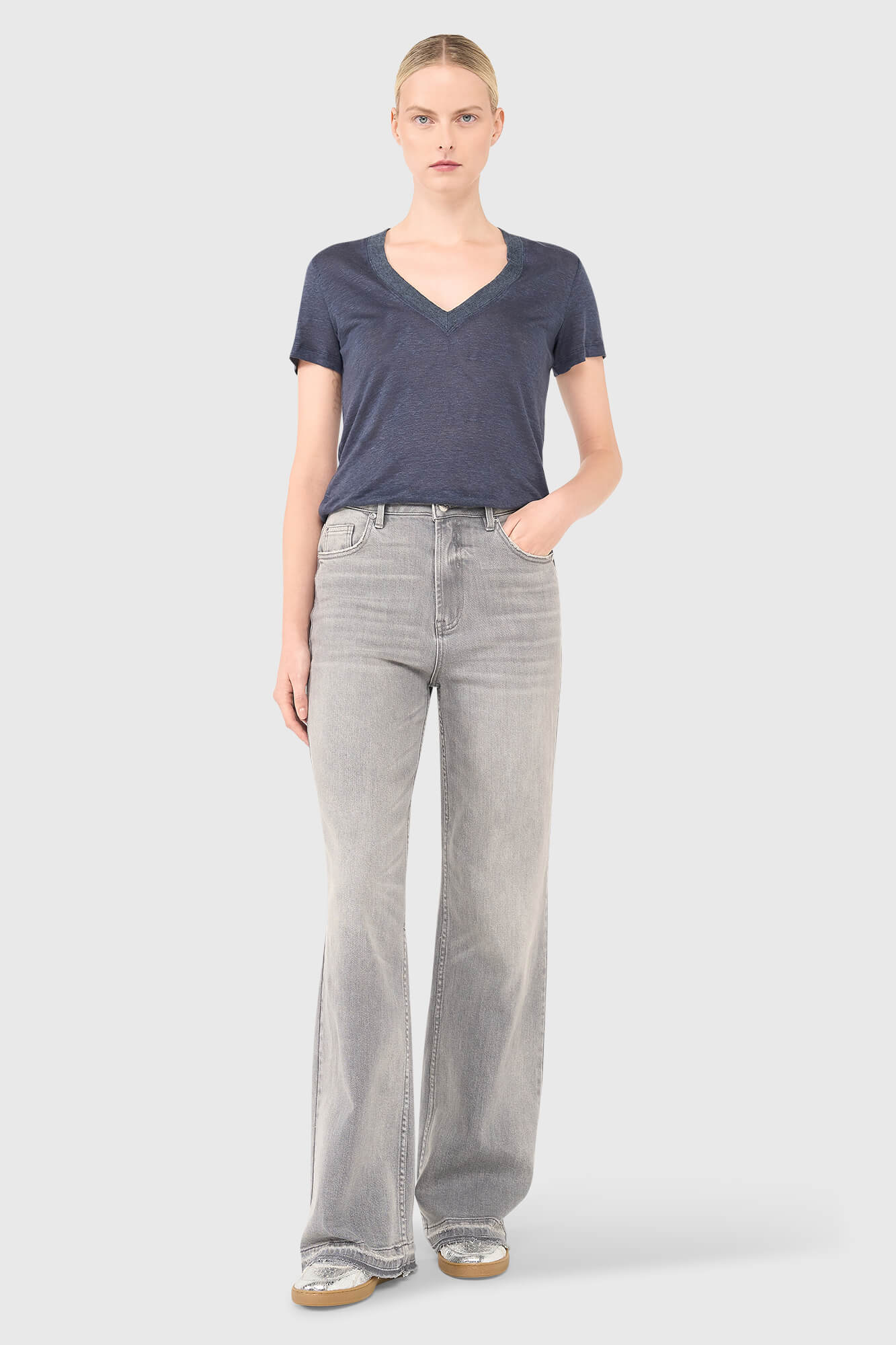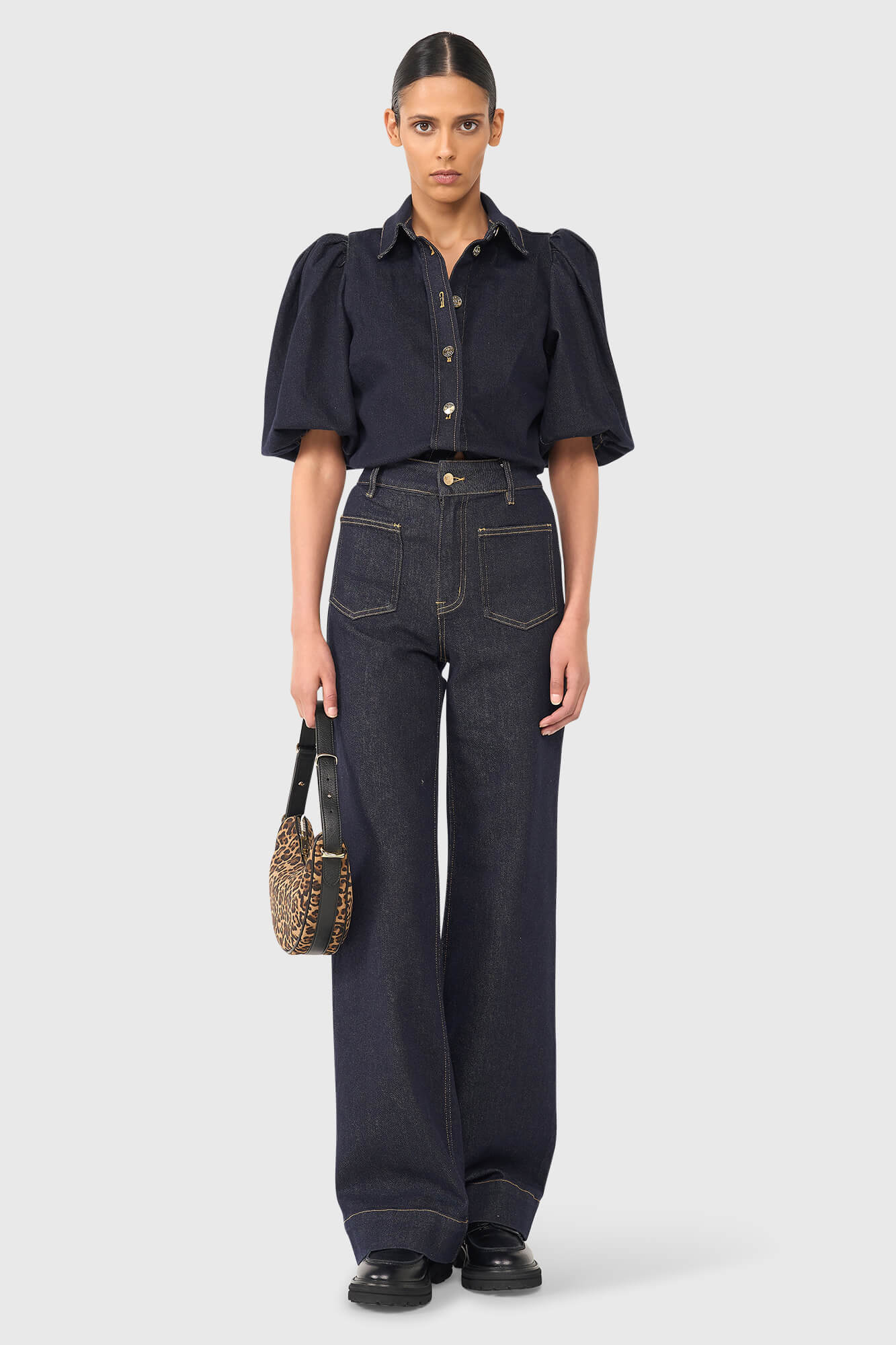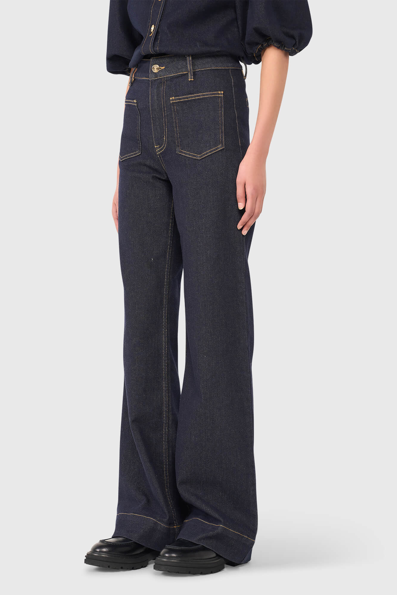 Jean coupe large avec faux revers